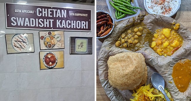 Chetan has earned legendary status among locals for its crispy kachoris/poorīs served with four different sabzis, boondi raita, and sweet gulab jamuns. Kachoris or pooris are deep-fried right at the entrance, filling the air with irresistible aromas. The food comes on sal‑leaf pattals, reducing plastic waste and adding traditional charm.